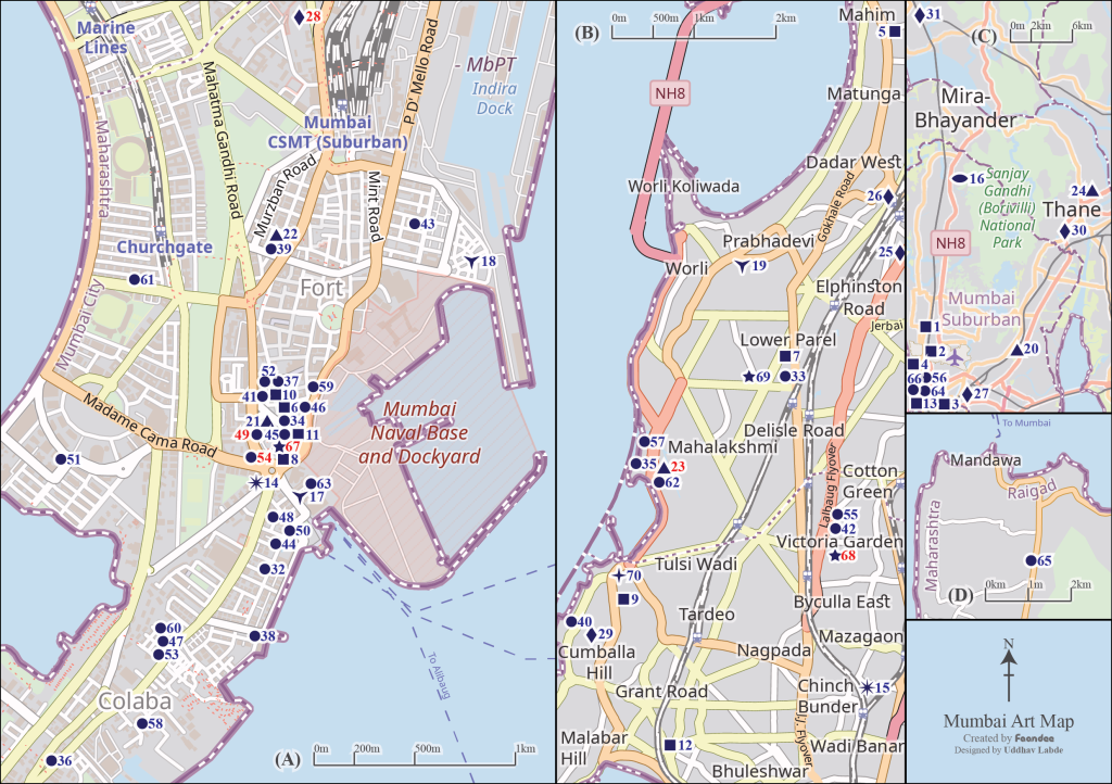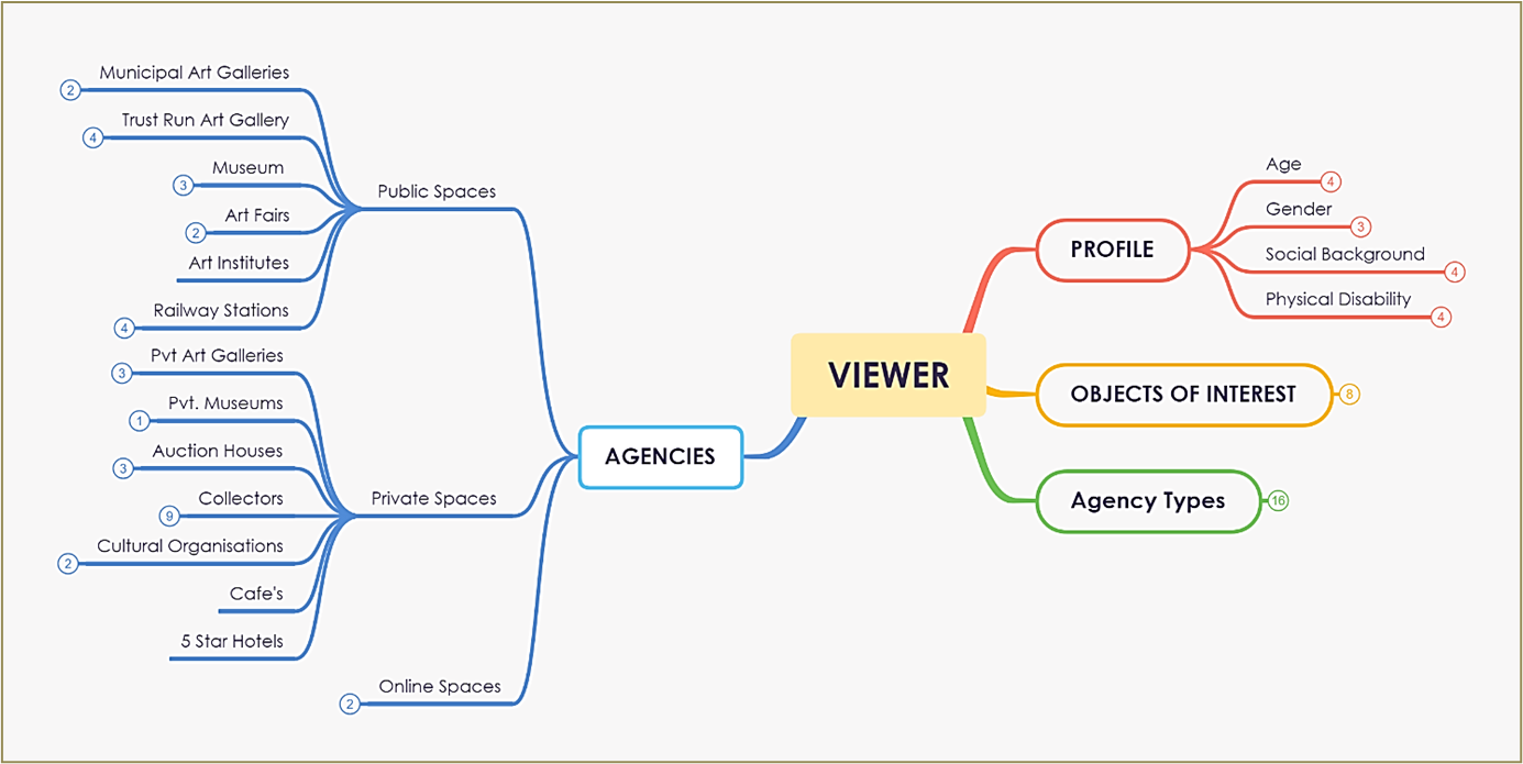 Inclusion and exclusion are topics of larger discourse, but the artworld was investigated based on quantifiable factors of mapping art spaces in Mumbai; their numbers, their physical and digital presence and programming, language of conduct, access to physically challenged citizens and google reviews, etc. Sudhir Patwardhan (artist), Mortimer Chatterjee (gallerist), Vidya Kamat (artist), Satyajit Dave (curator), Shreyas Karle (co-founder Cona), art educators, and informed exhibition visitors contributed to the understanding of the ecosystem.