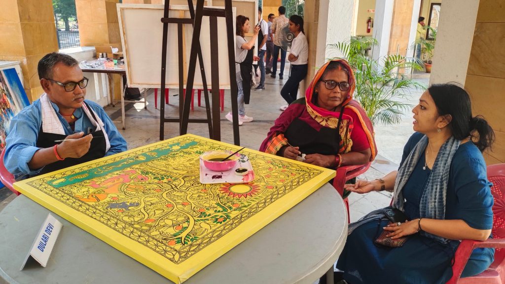 The Art in Industry program was established by Tata Steel in 1993, with a view to supporting cultural practices, and connecting diverse artists on a common platform. Annually, the event brings together eminent and emerging artists, urban contemporary artists and their counterparts practicing indigenous styles, youth, art connoisseurs and the public. Usually a four day event in the calendar of Centre for Excellence, in 2018, Lina Vincent collaborated with the CFE to organise a two week art residency that included prominent artists working with painting, sculpture, ceramic arts and installation. She returned in 2023, post the pandemic period, to curate the program that centered around the theme ‘Art for the Planet – Celebrating Diversity and Inspiring Change.’ The theme highlighted the enduring commitment of the art camp to embrace inclusivity and diversity across various dimensions.