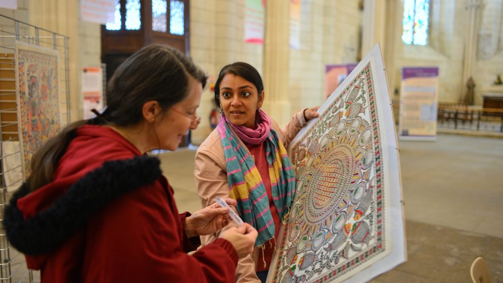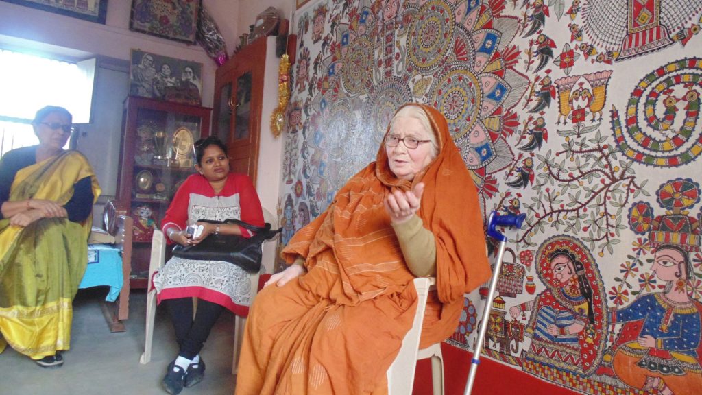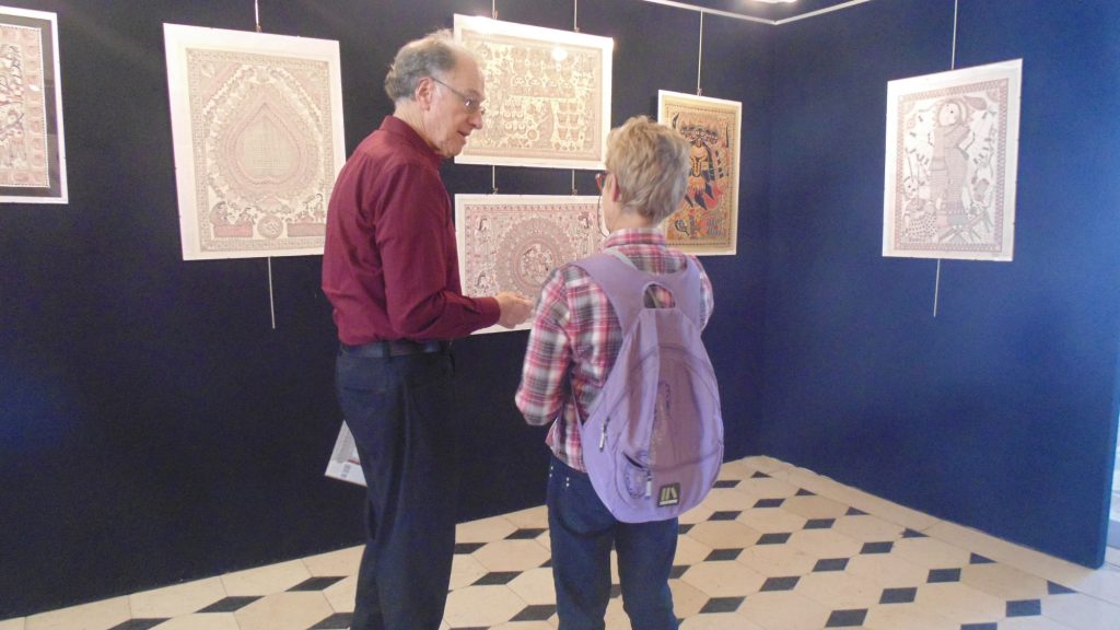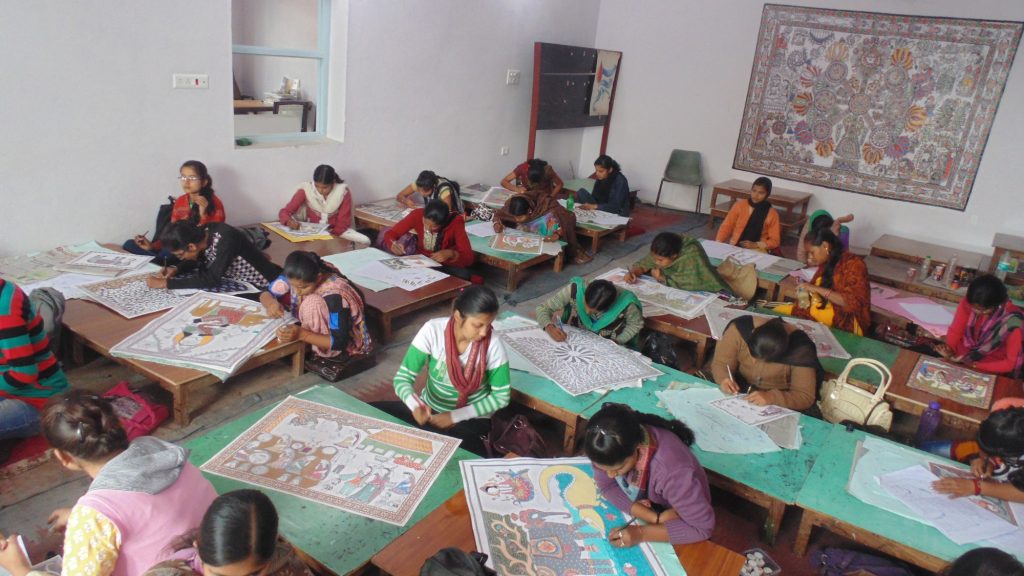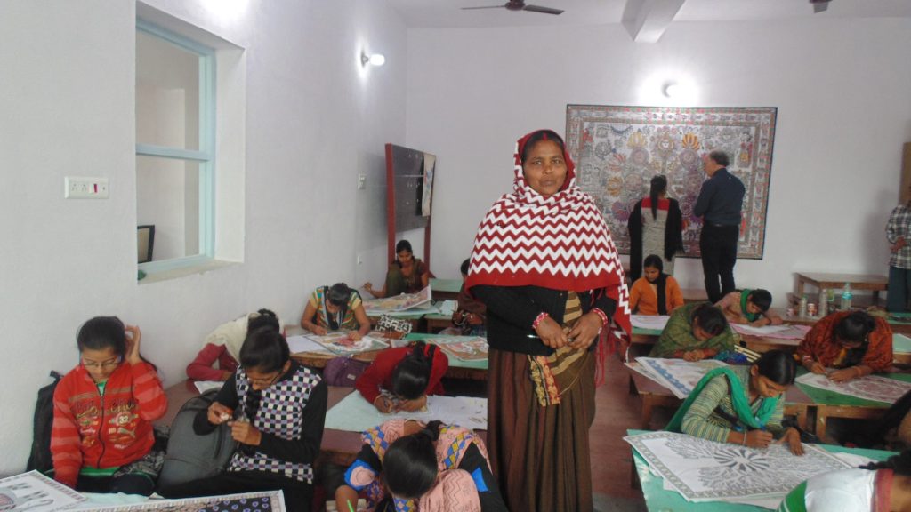 The long term association has required frequent visits to Madhubani (Bihar) and its surrounding villages, working with scholars, researchers and the mithila artists themselves to build better structures of artistic production and channels for documentation, exhibition and sales.